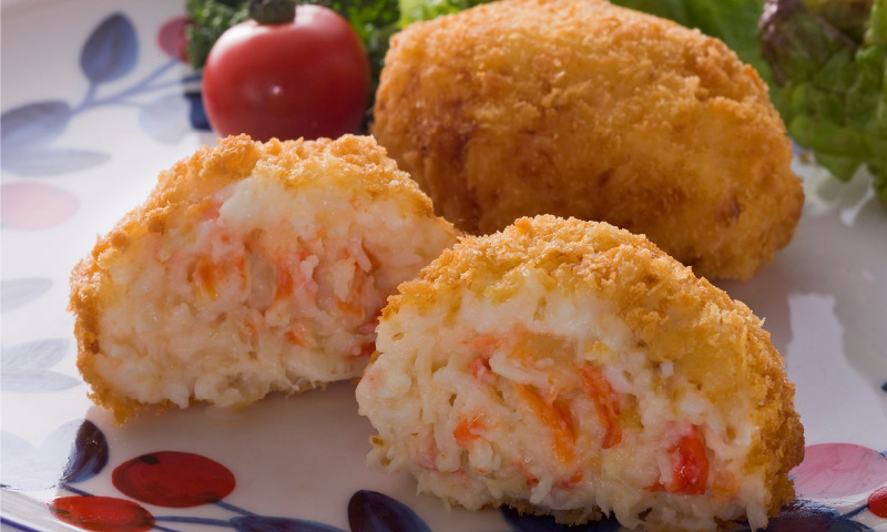 タラバガニのむき身をたっぷりと入れた贅沢なクリームコロッケ。