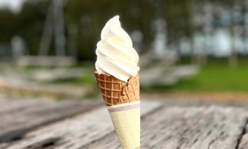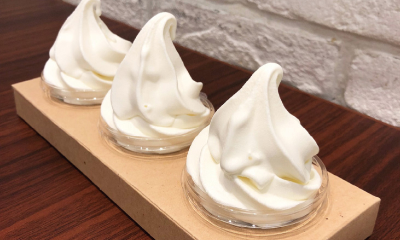365日屋外で生活する牛たちの野性的なバイタリティーを感じる養老牛放牧牛乳そのままのソフトクリーム。有機生乳100%で、添加剤、生クリーム不使用、糖分低めのナチュラルソフト。