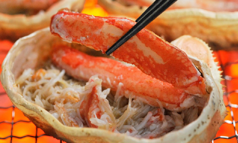 かにの甲羅を器に、かにみそと、かにフレーク、かに棒肉をのせて焼きました。かにフレークにかにみそが染み込み、かに棒肉に絡めて味わいください。口の中に旨味が広がります。