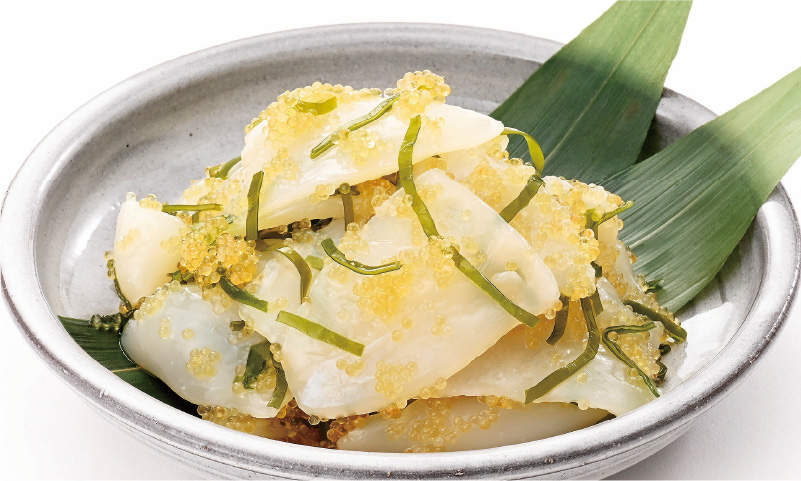 紋甲いかに、昆布と飛魚の卵を和えたお刺身風生珍味です。