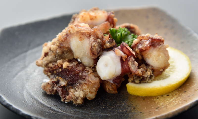 そのご当地グルメである「たこザンギ」。前浜で水揚げされた大ぶりなタコを油で揚げた地元でも古くから食卓を彩るソウルフード。 -