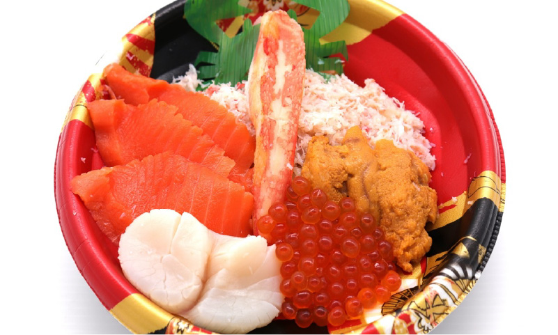 H16 | 北海道朝市 | 札幌市 | 新物いくら丼(2,000円)・蟹いくら丼・ほたていくら丼・3色丼・ほたて丼・北海道朝市丼、いくらサーモン丼、ばらちらし丼、うに丼 |